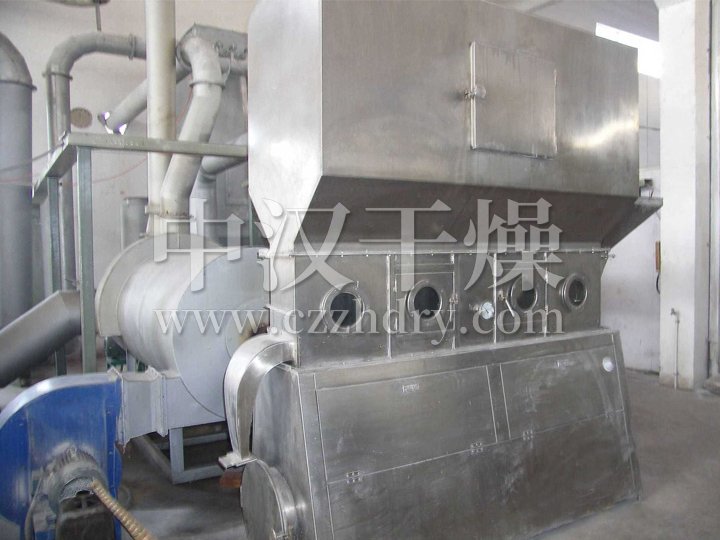 洁净的热风经阀板分配进入床体内,从加料器进入的湿物料被热风形成沸腾状态。由于热风与物料广泛接触,增强了传热传质的过程,因此在较短时间内就可干燥。如用连续型,物料从床体的一头进入,经过几十秒至几分钟沸腾干燥,自动从床体另一头流出。本设备一般进行负压操作。